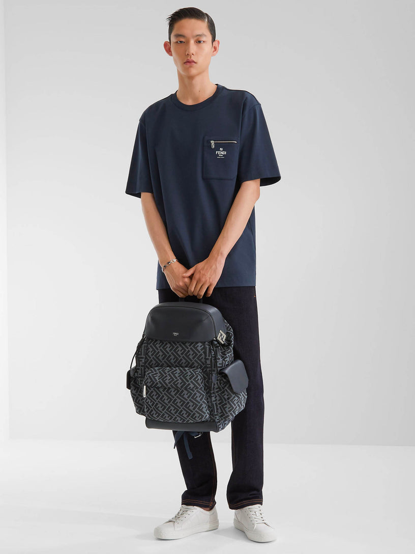 • Finished with a pocket on the chest with zip and contrasting printed Fendi Roma logo
