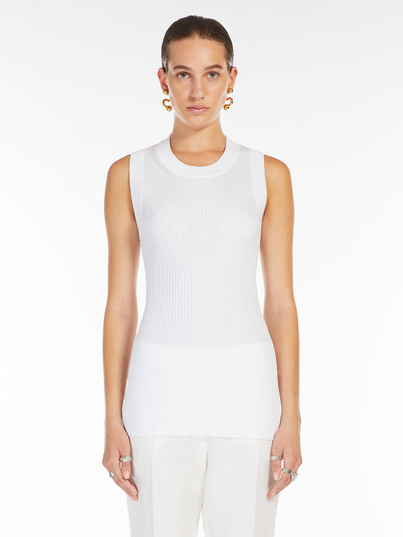 - Drop stitching along the neckline, armholes and sides, with wide ribbed borders