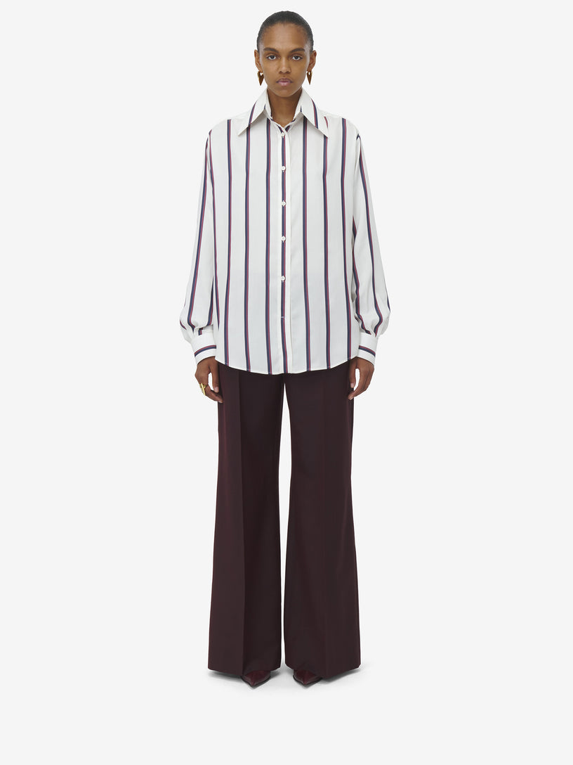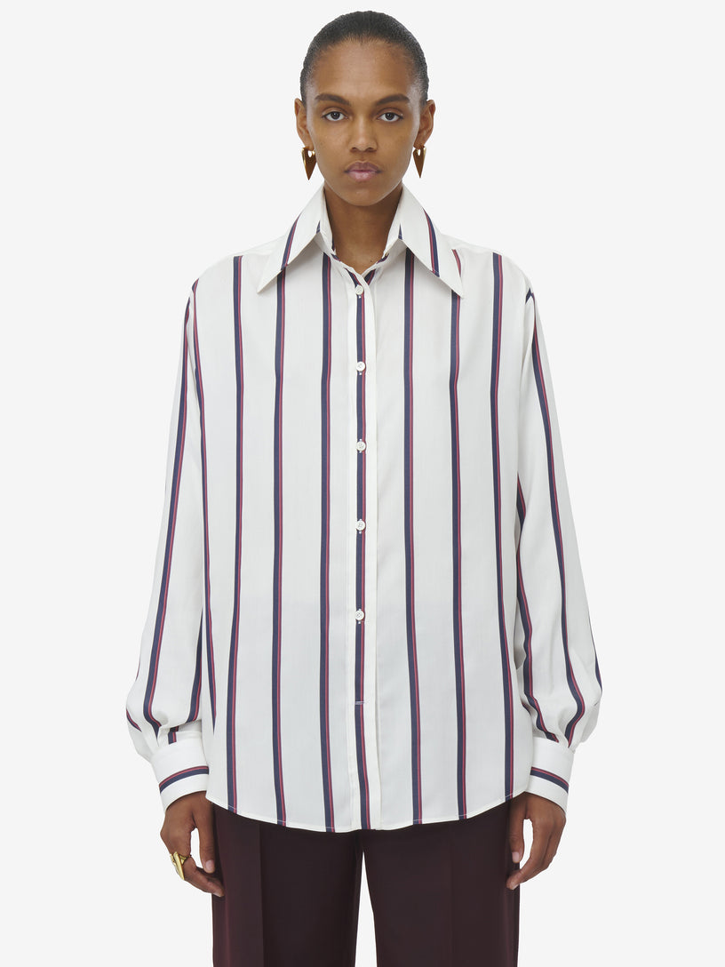 - Shirt with all-over ivory, navy blue and burgundy College Stripe print