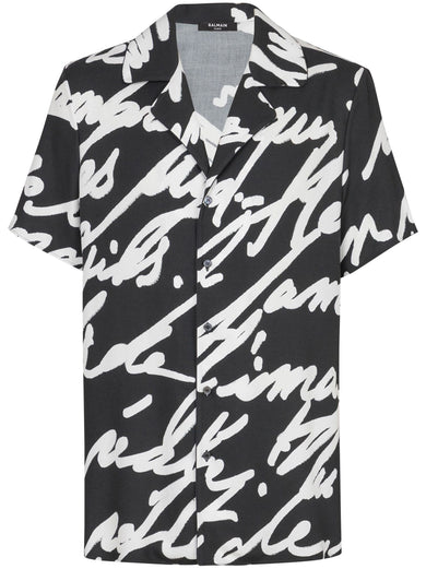 - Pajama shirt with all-over Balmain label motif print