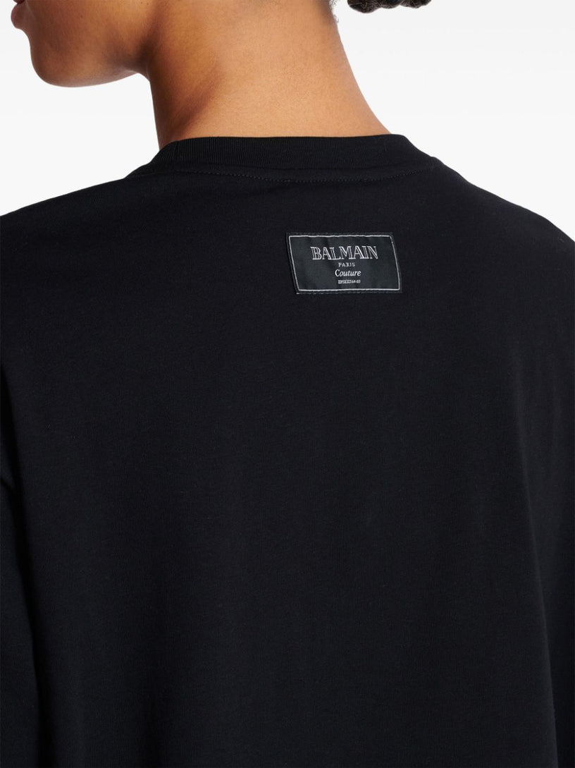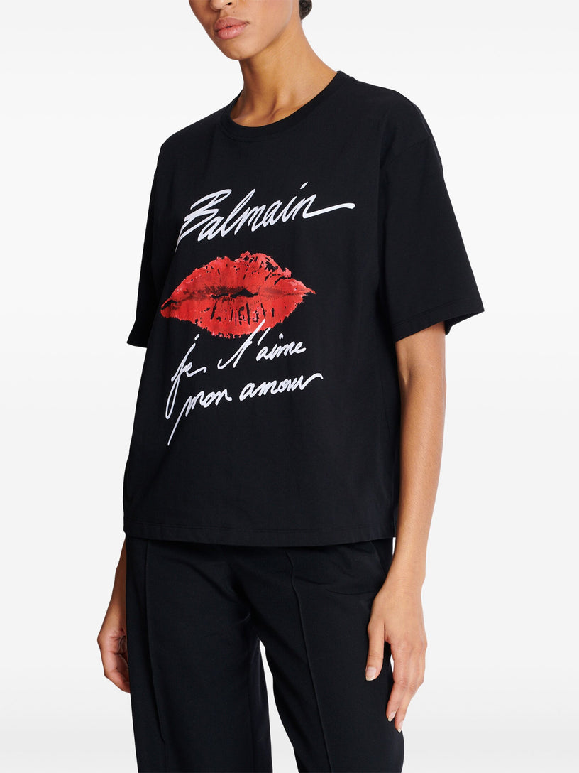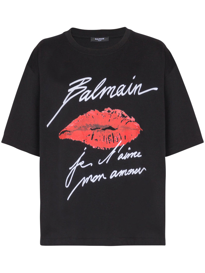 - Logo Balmain e scritta “Je t’aime mon amour” floccati a contrasto sul davanti