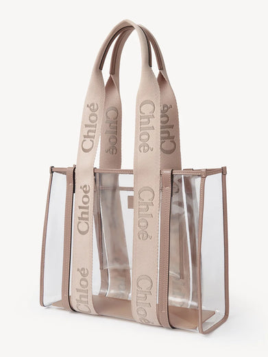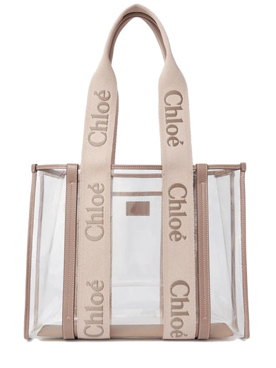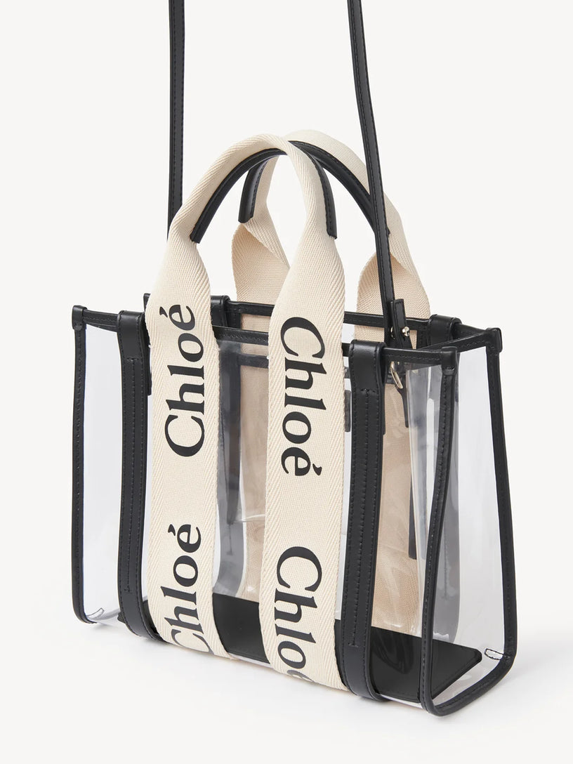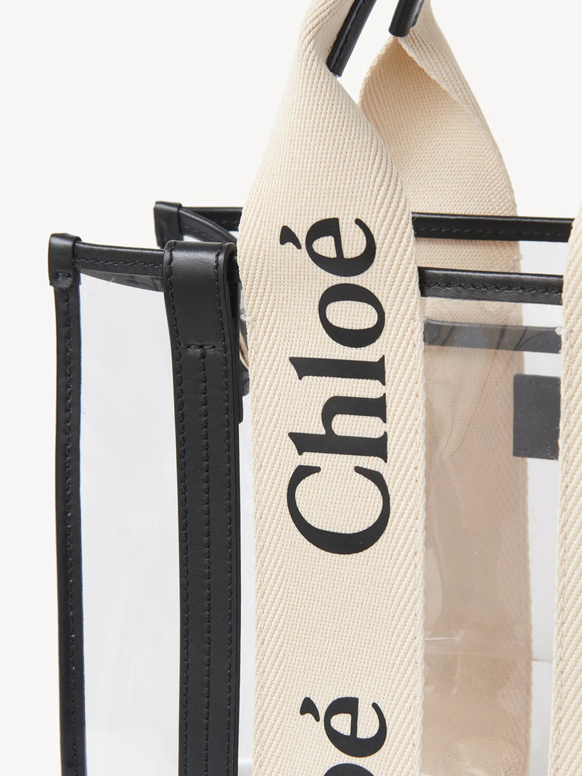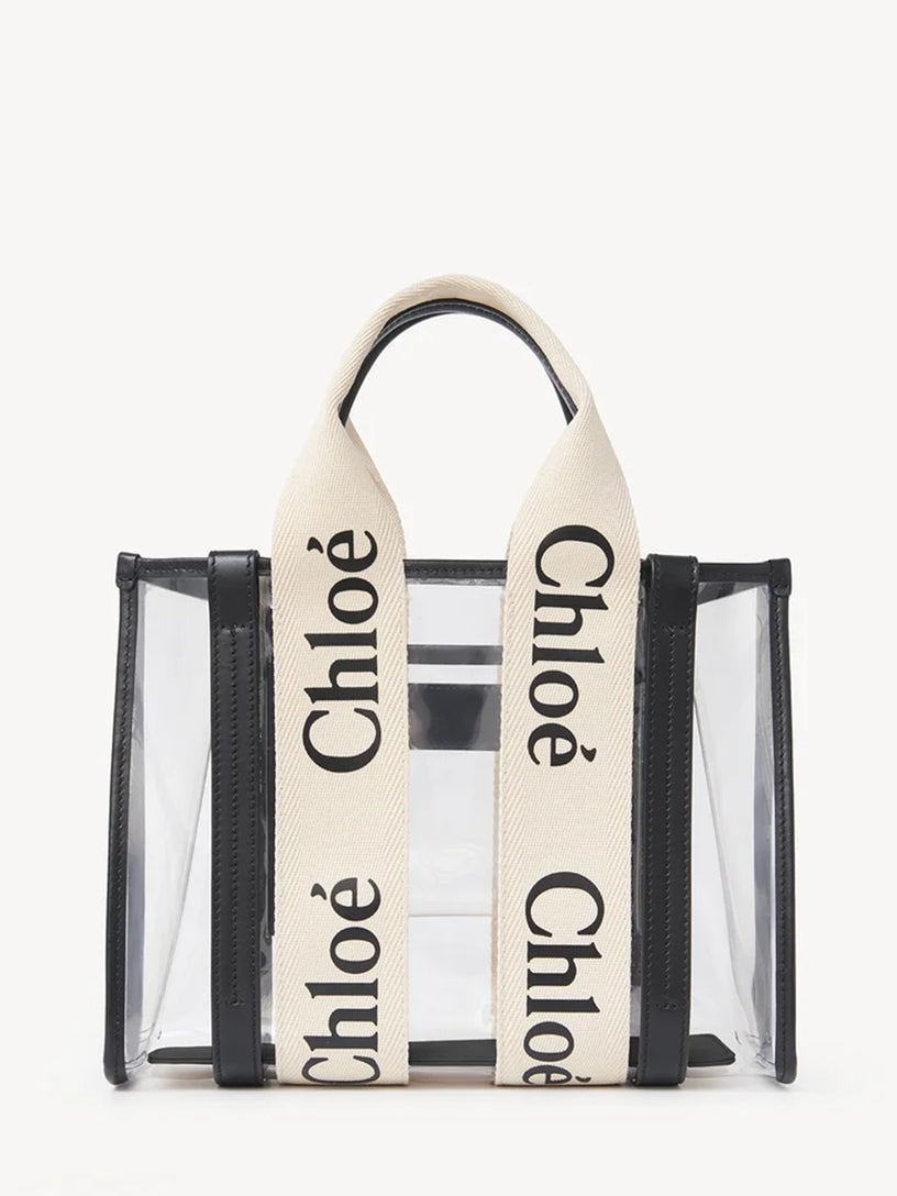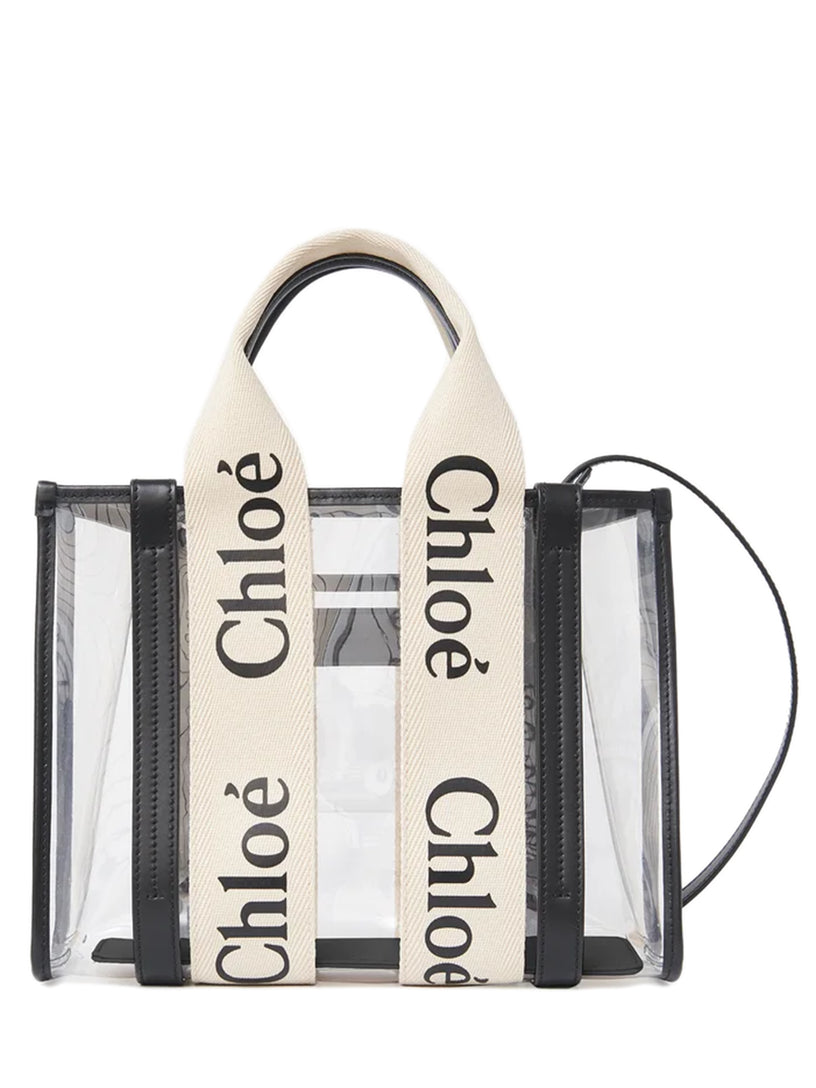 - Contrasting vertical strips in calfskin and signature canvas ribbons featuring the ChloƩ logo