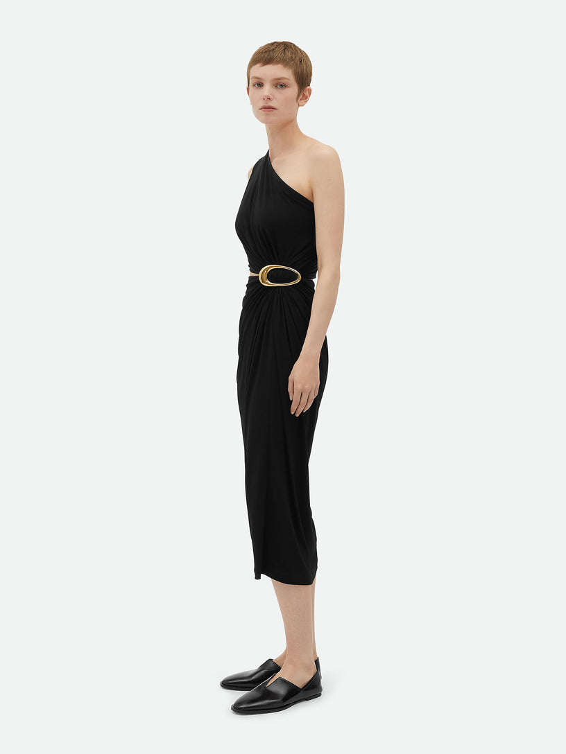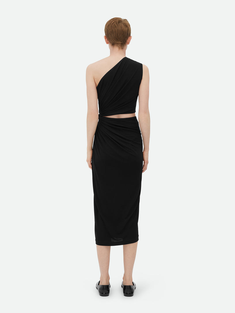 - Abito asimmetrico in jersey di viscosa opaco effetto crêpe