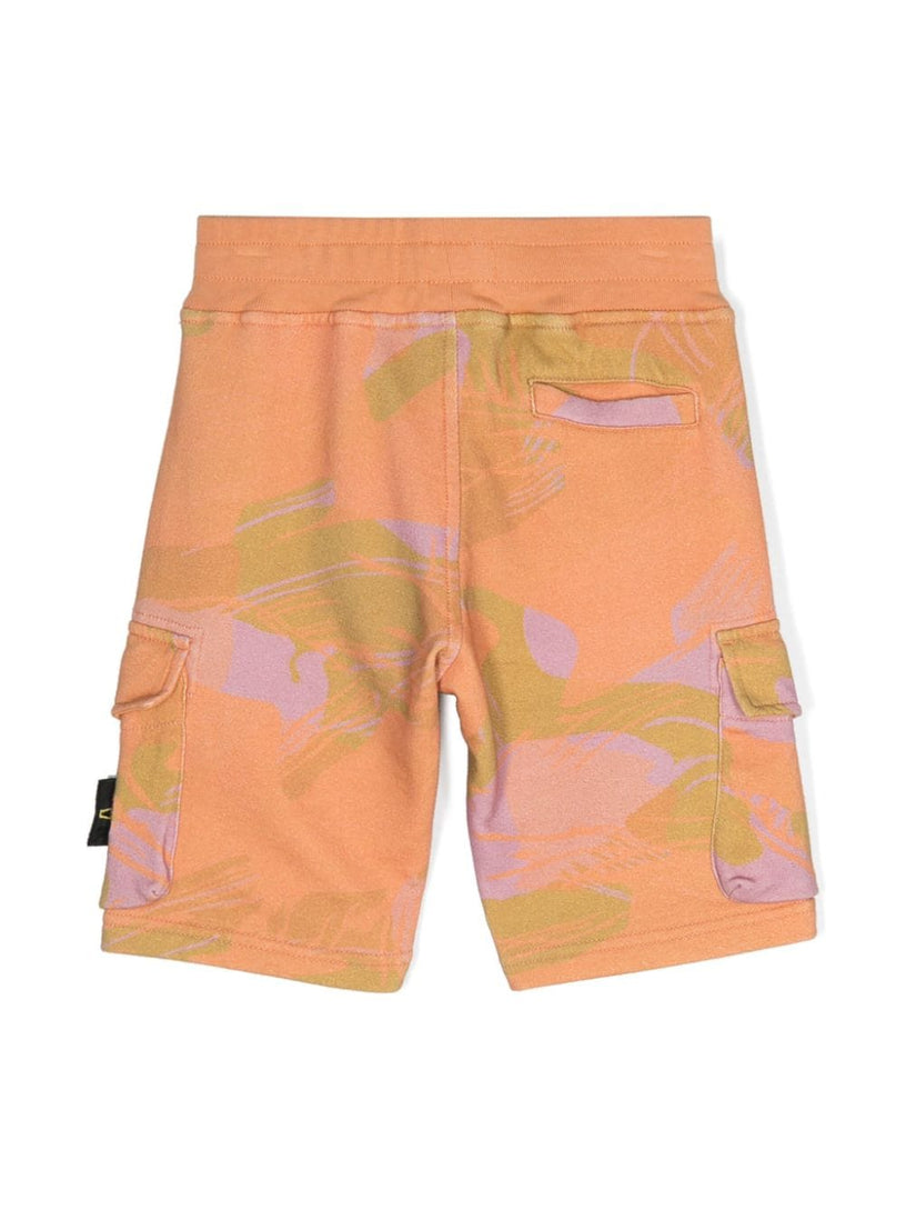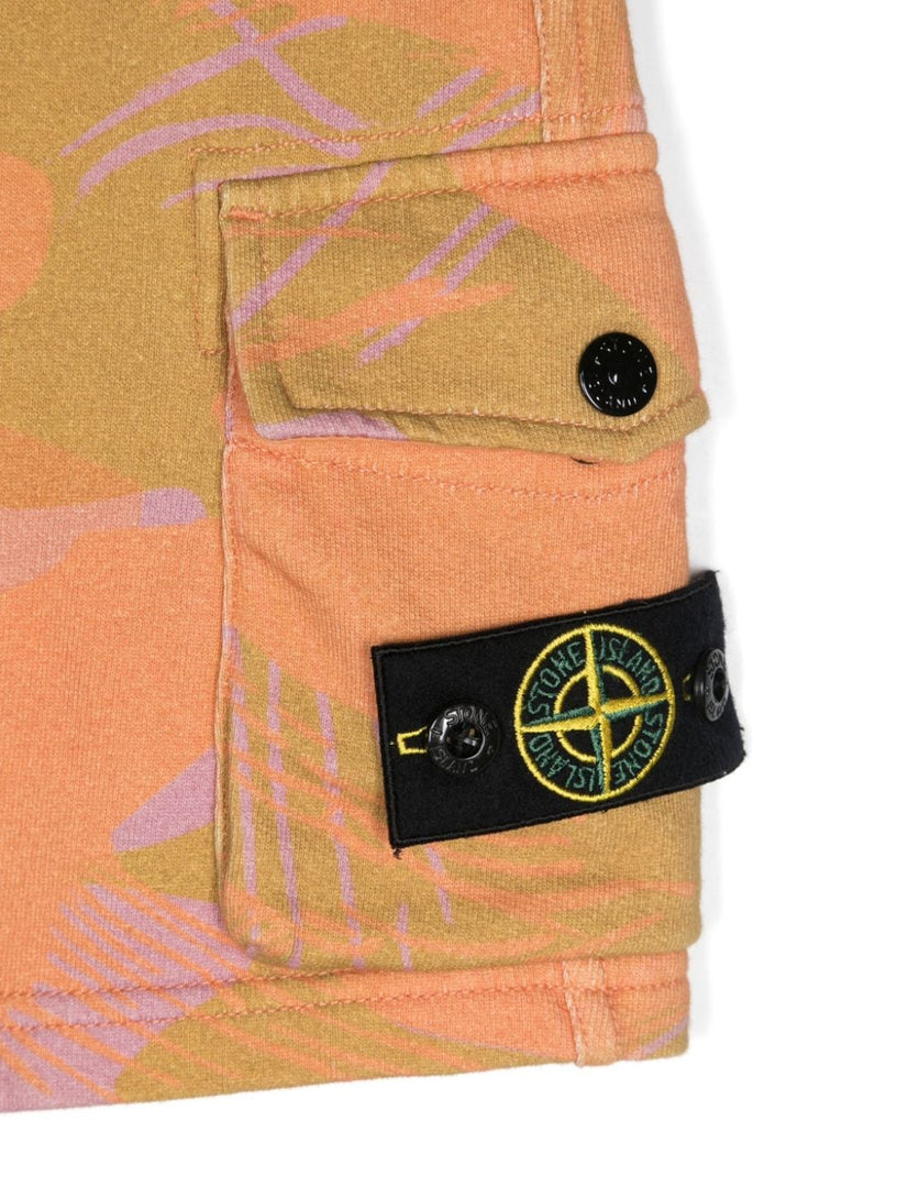 - Una tasca a soffietto su ciascuna gamba, chiusa da patella e automatico; la tasca sinistra riporta il badge Stone Island